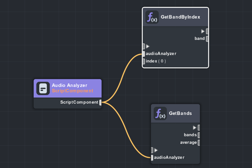 The result values from the audio analyzer can be referenced in a Script Graph with the help of the Custom Script nodes