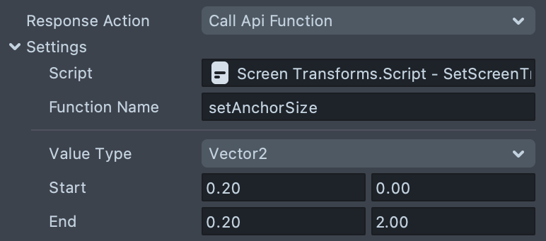 Call Api Function: allows to interpolate between start and end values and pass result to the api function.