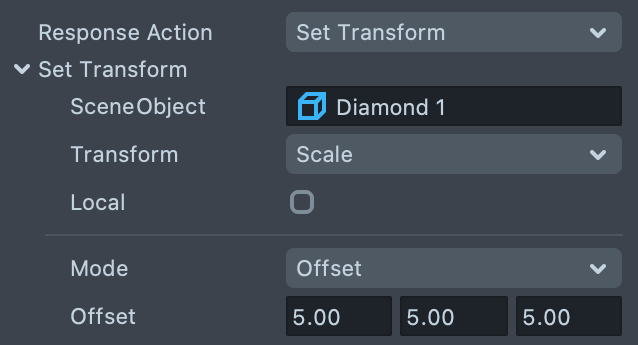 - Mode: allows to specify Start - End values or Offset from the current transform value