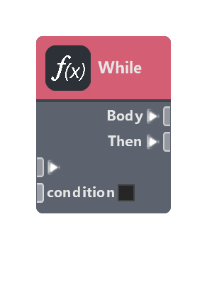 Continues to execute the Body port as long as condition is true. Once condition is false, the loop ends and the Then port is executed.