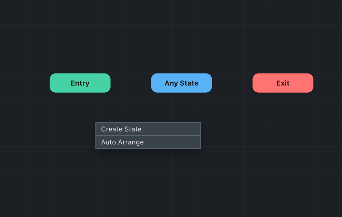 States represent the different animations your object can play. Each state appears as a node on the canvas that you can drag to reposition.