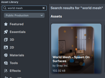 Find the World Mesh - Spawn On Surfaces asset in the Asset Library and import it into your project. Click here to learn more about how to use assets in the Asset Library.