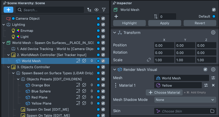 This example uses the World Mesh, which capabilities can vary across devices. Take a look at the World Mesh guide to learn more.