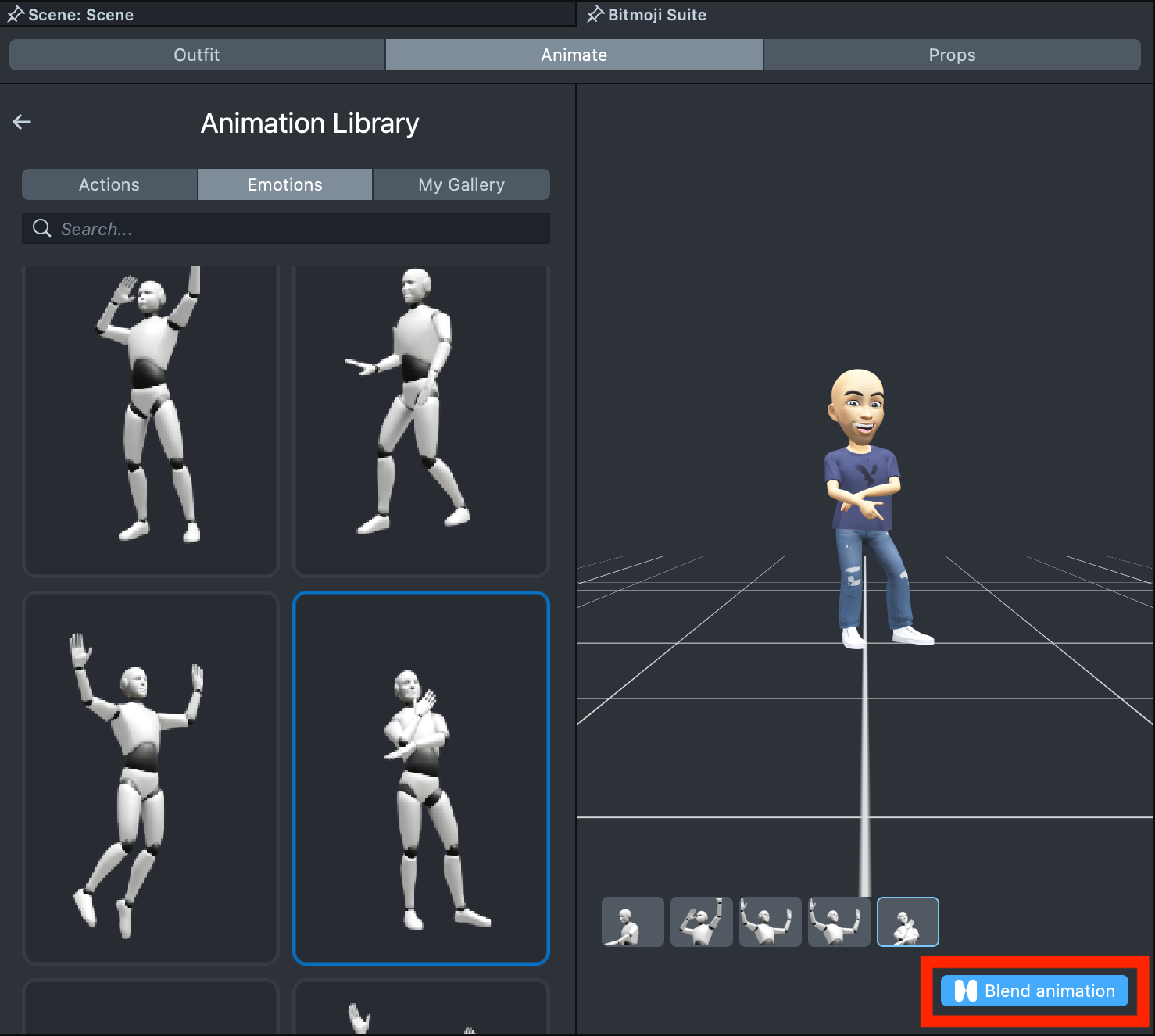 Visit Animating Bitmoji 3D to learn how to animate Bitmoji using other tools and how to apply them.