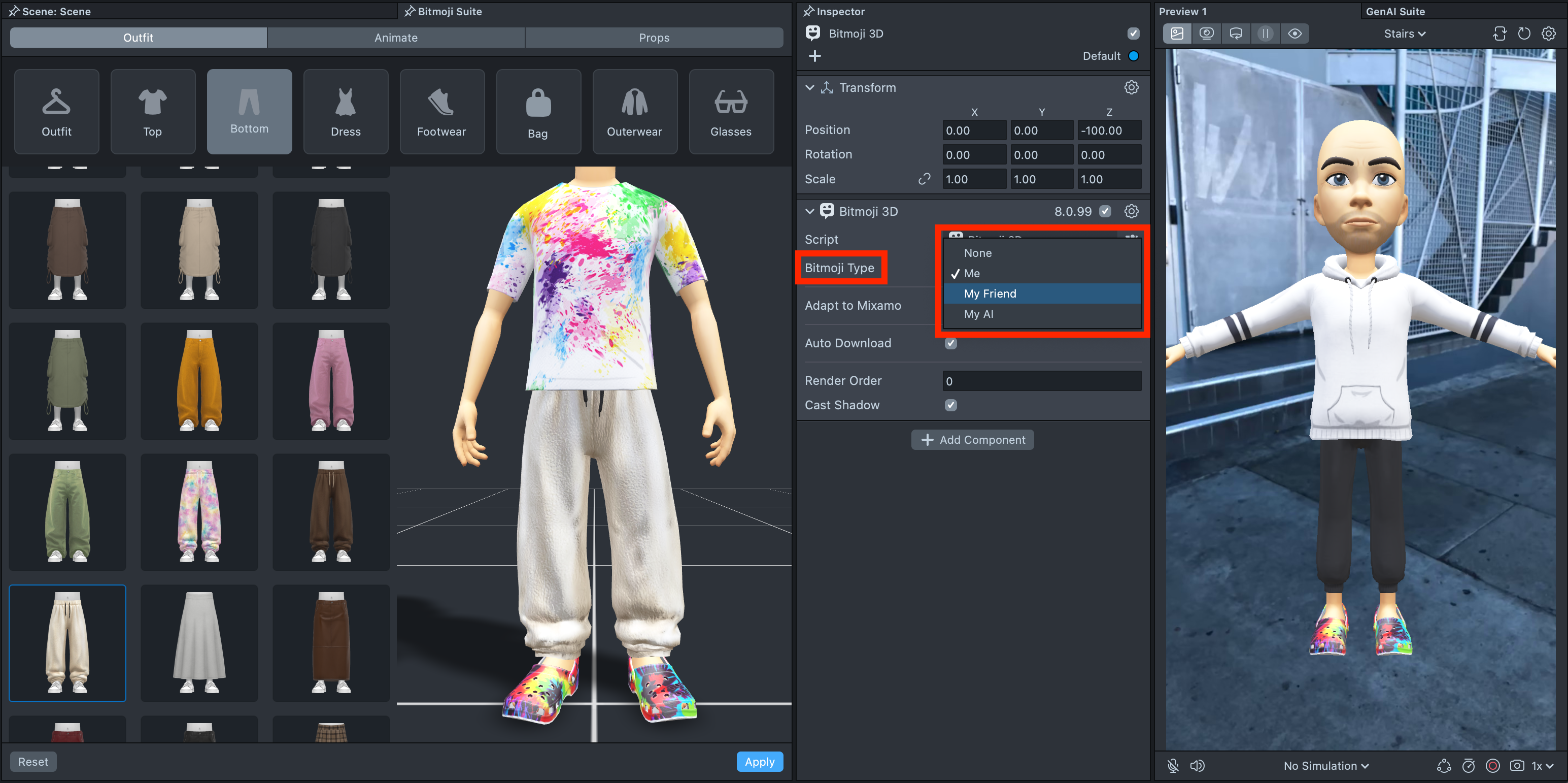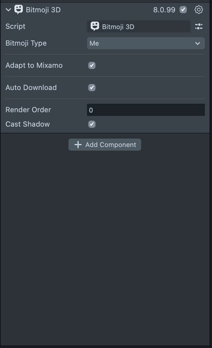 6. When you are done with the Outfit creation, you can go to the Bitmoji Component in the Inspector and choose the Bitmoji Owner