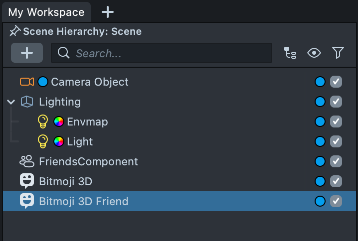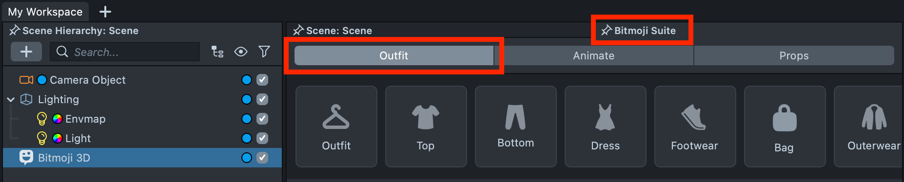 3. Select the Bitmoji in the Scene Hierarchy that you want to apply the copied outfit to