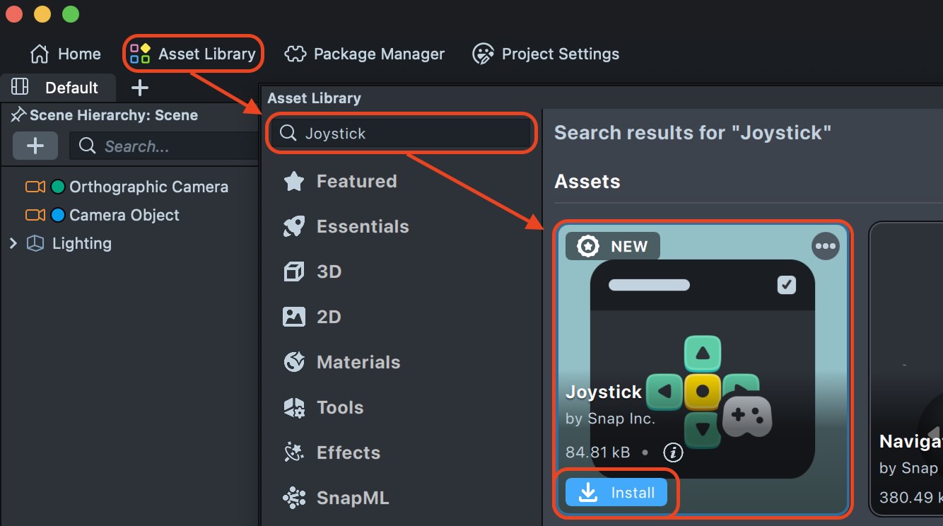 then add it to the Asset Browser panel by clicking the + button and looking up Joystick.