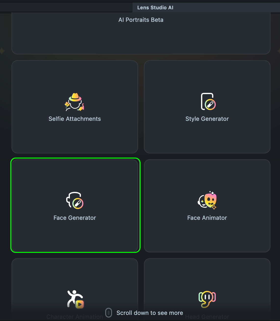 4.1. Next, we’ll add the component from Lens Studio’s Face Generator plugin.