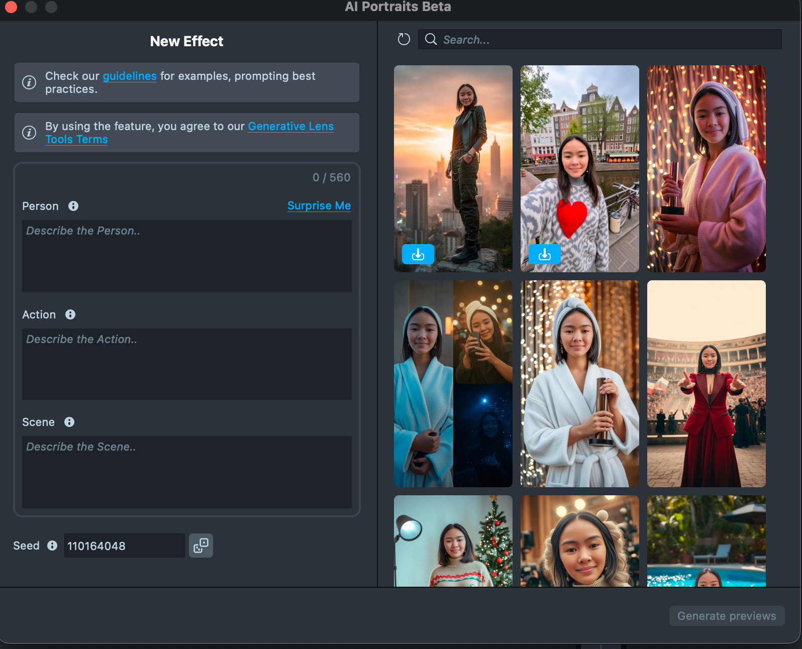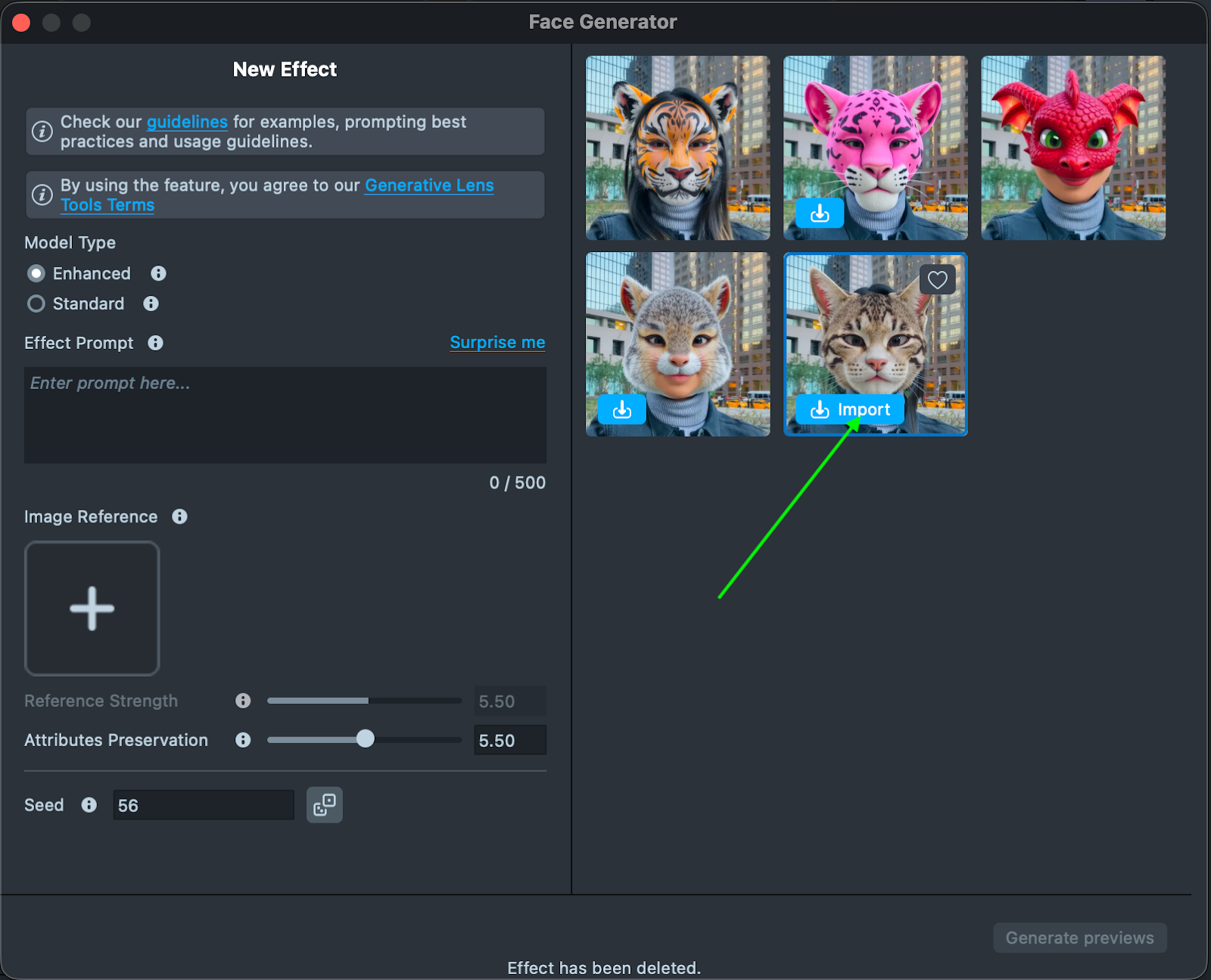 1.3. Generate an effect using text prompts, or select an existing one from the Gallery.