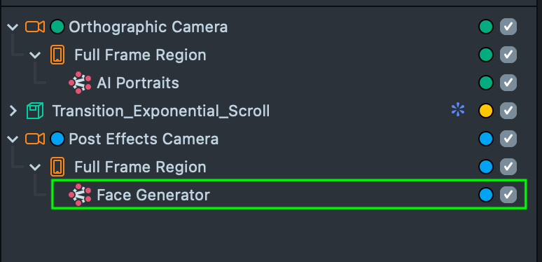 4.4. After clicking Import, the Face Generator will be automatically added to your project. If necessary, drag it into the Post Effects Camera and assign the correct layer.