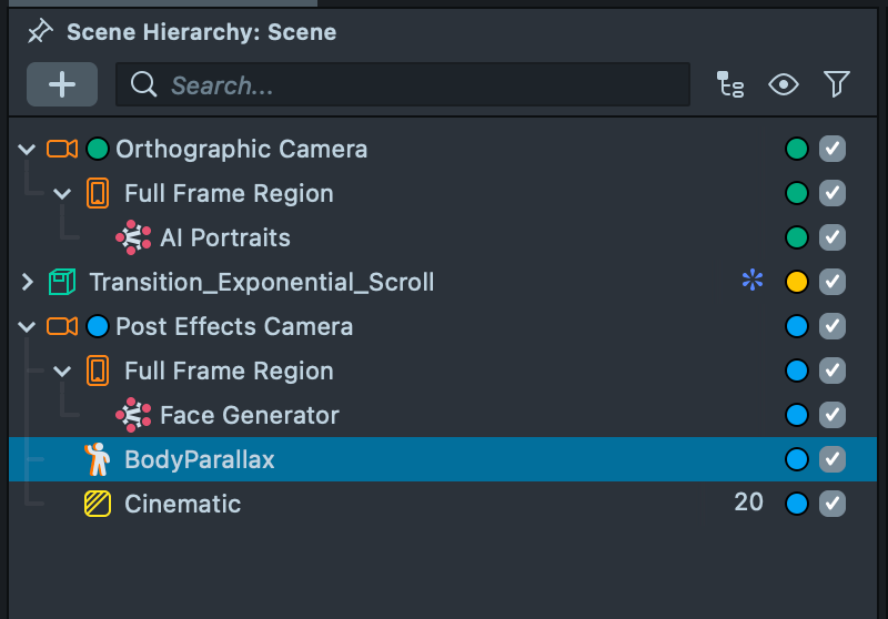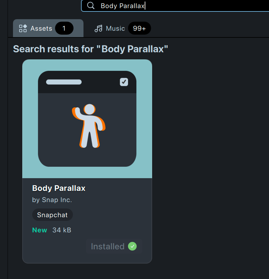 6.1. To make the generated AI Portraits output more engaging, add a Body Parallax effect to create a sense of depth and motion. Open the Asset Library, search for Body Parallax component, and click Install. The component will appear in both the Asset Browser and the Scene Hierarchy.