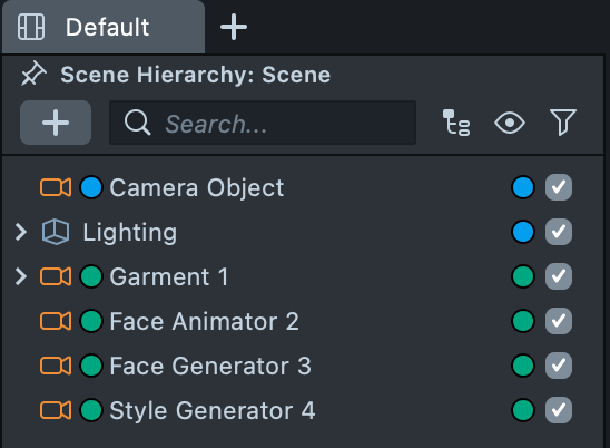 2.2. Create a Render Layer for each camera and name them accordingly: Face Animator, Face Generator, Style Generator (we will use the existing Orthographic Layer for the Garment effect).
