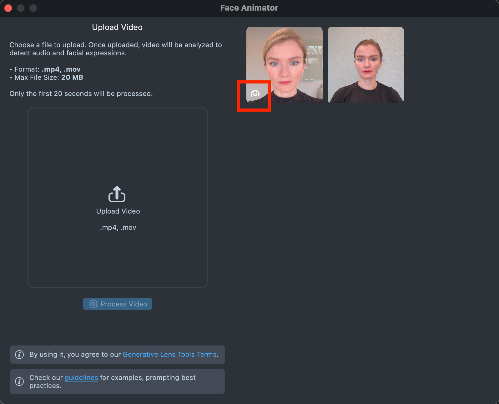 Once you select the video, reviewing will begin. If no face is detected, you’ll see an error message and can try again with a different video. If a face is successfully recognized, a thumbnail of your video will appear.