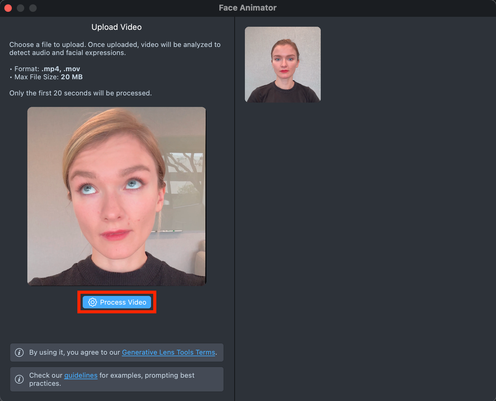 Launch Face Animator plugin. In the window that opens, you’ll see an option to upload your video file. Simply click the large placeholder labeled