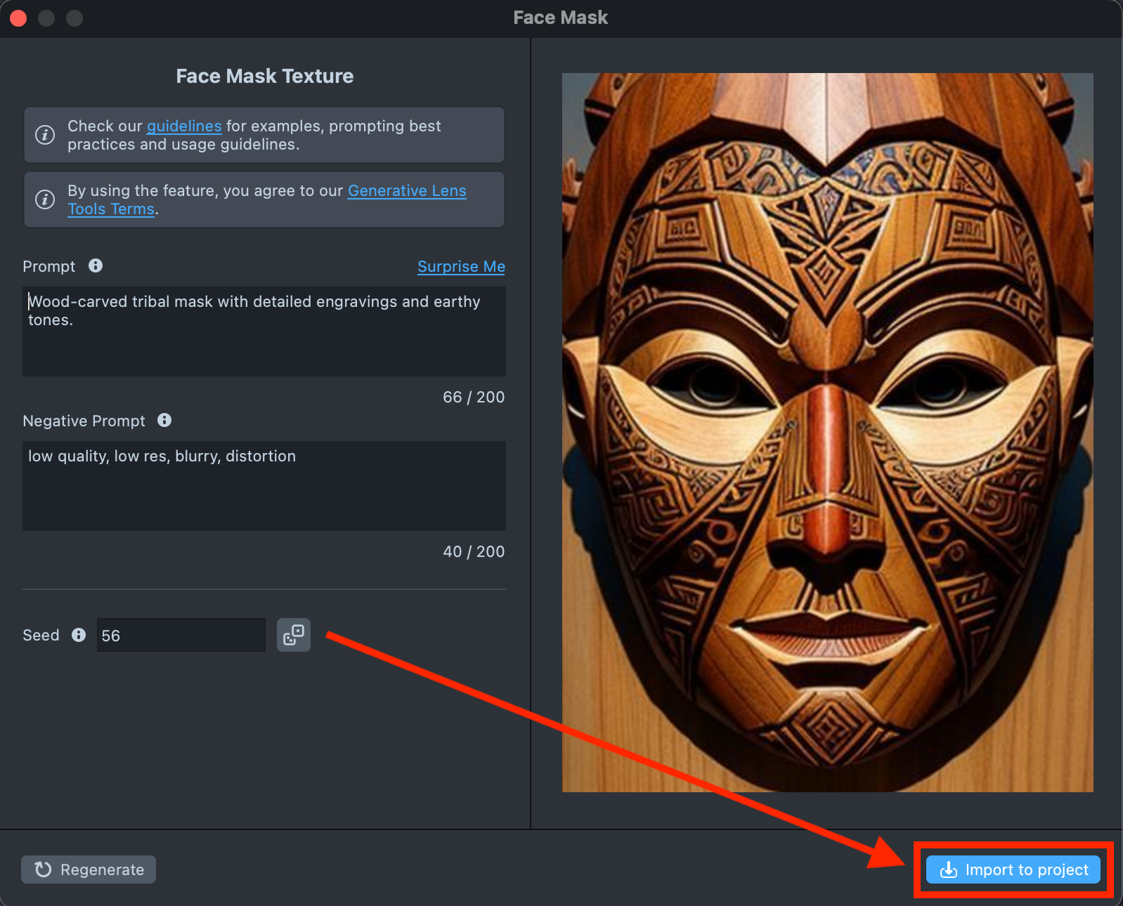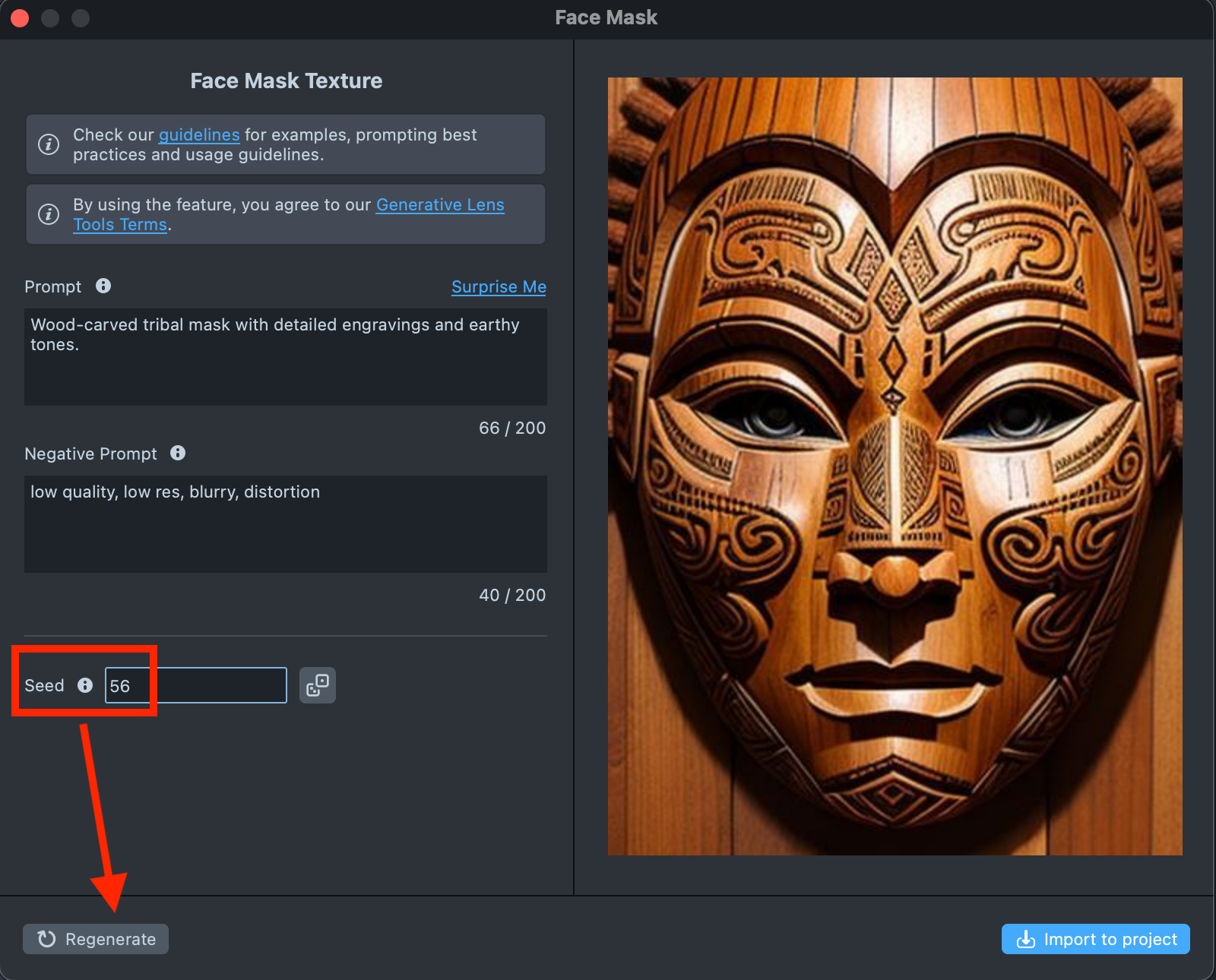 If you are ready to use your own prompt, enter a description of the Face Mask you’d like to generate in the