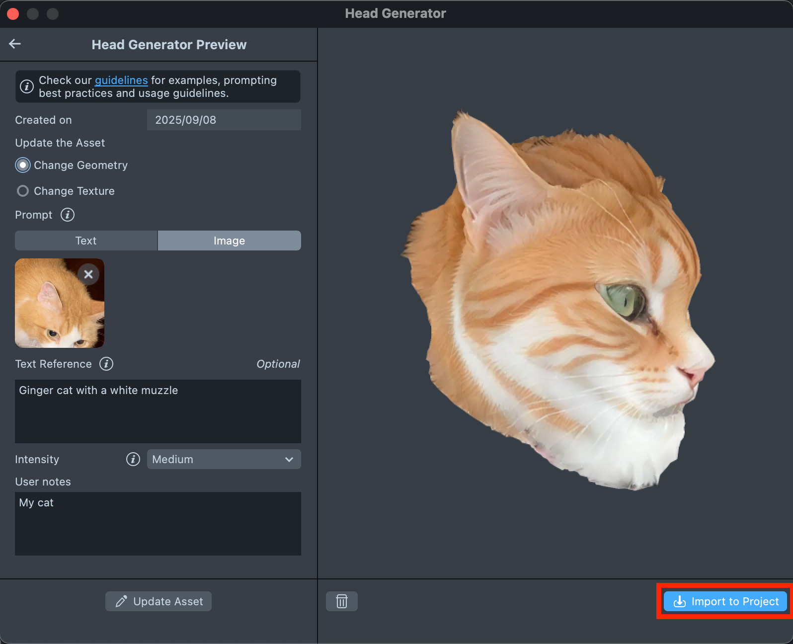 Import to Projectto bring the 3D Head into your project and continue building your lens.
