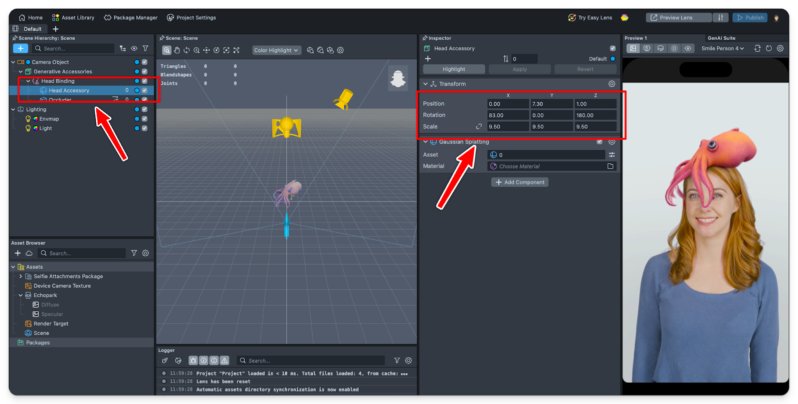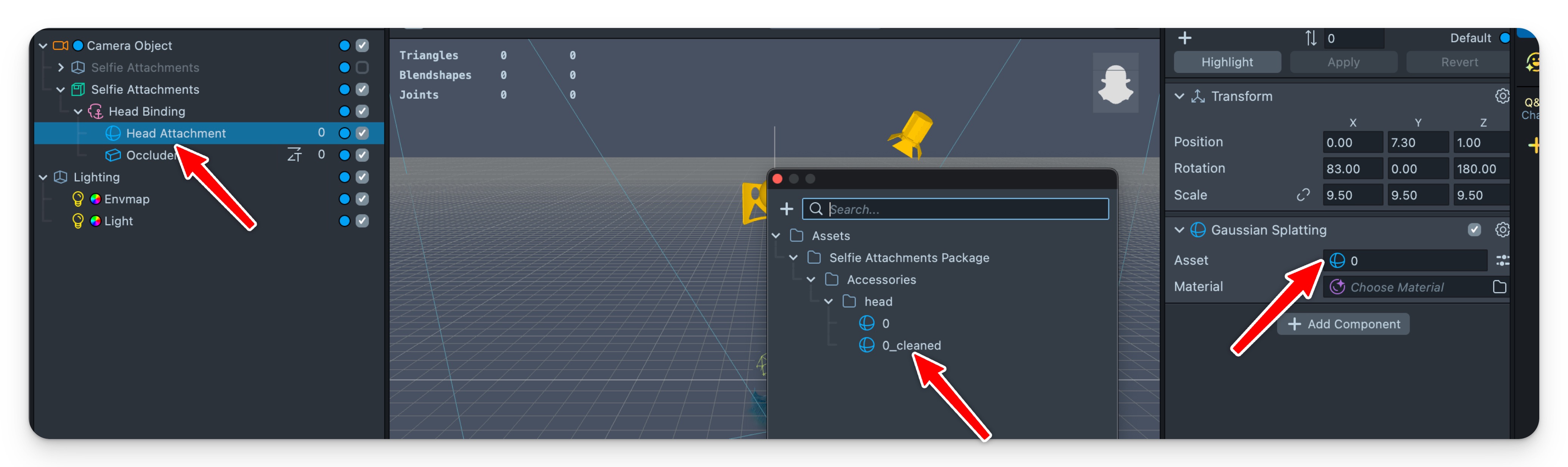 Drag the cleaned splat back into your Lens Studio project (alongside the original .ply file). Update the