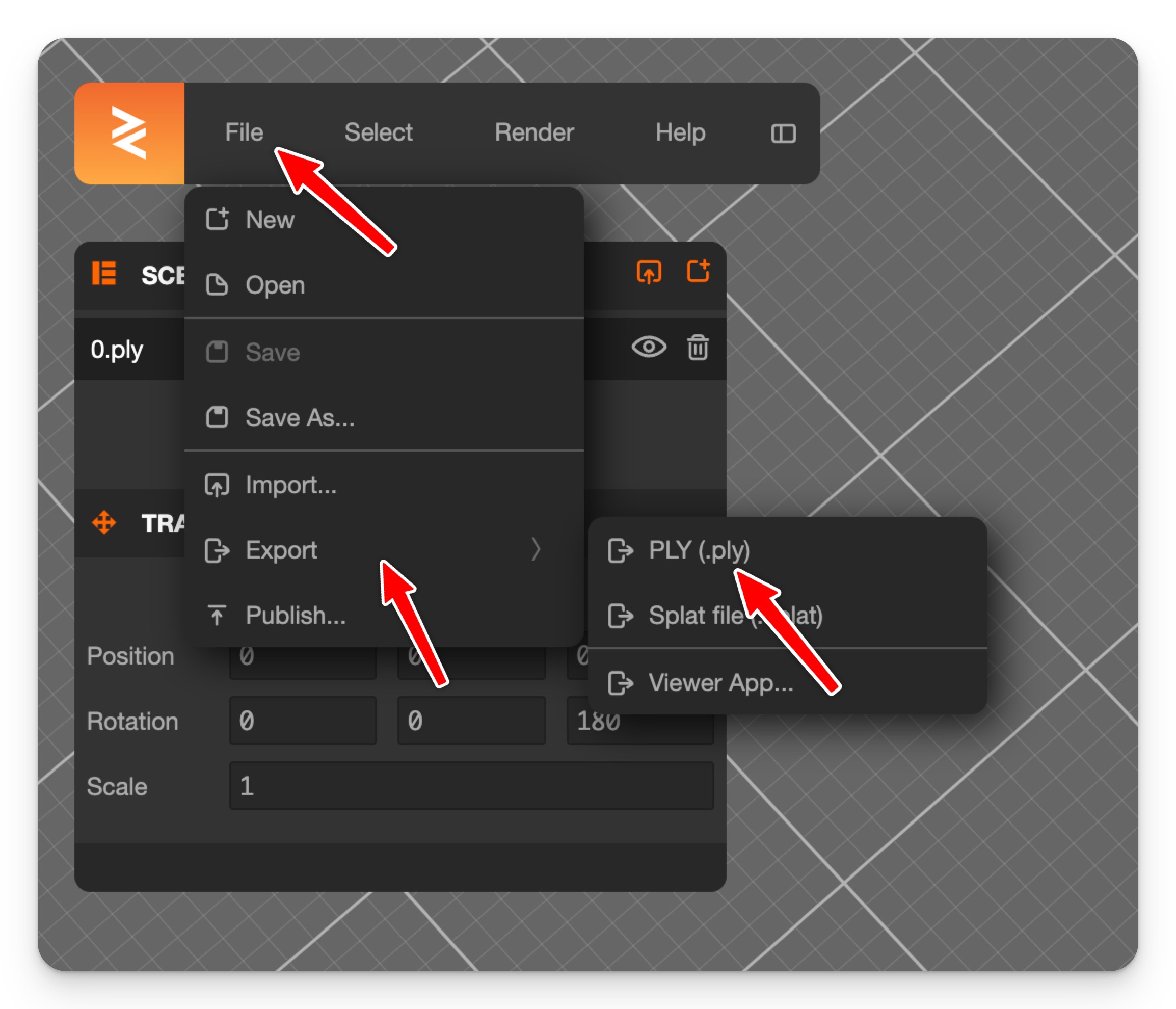 <Backspace>orDeleteto remove selected splats. Repeat until you're happy with the result. -