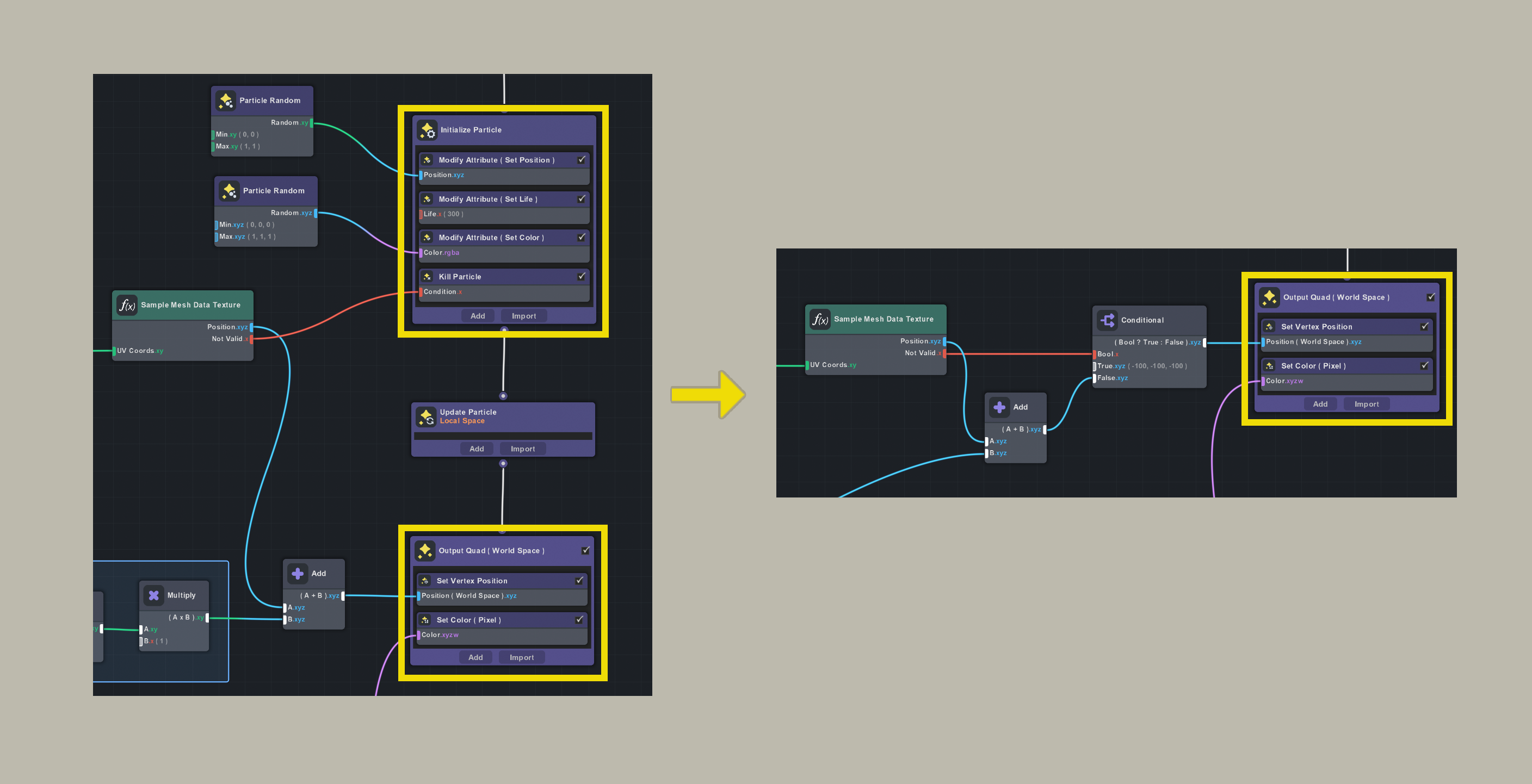 While we could technically pass Not Valid into a Particle Kill node to remove invalid particles, this adds extra texture sampling just to determine whether particles should be discarded.
