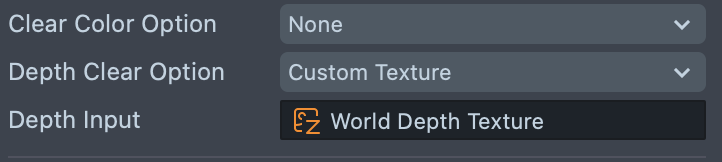Set the Depth Clear Option to Custom Texture. Choose the World Depth Texture as the input for the Custom Texture.