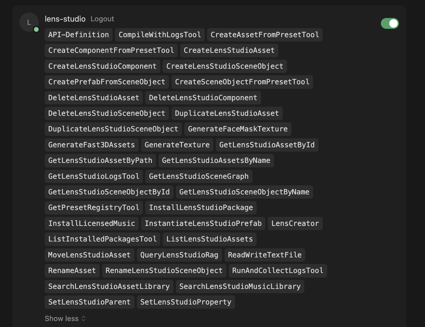 The MCP server must be running in Lens Studio for the connection to work. If you close Lens Studio or stop the server, you'll need to restart it and potentially update the authorization token in your Cursor configuration.