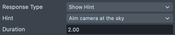 The Show Hint response type allows you to trigger the Lens Hint. This hint text is localized to the region that the user is in