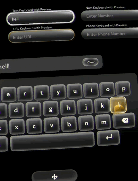 The AR Keyboard is a digital overlay displayed within the Lens experience on the Spectacles device. When activated, it animates directly in front of the user.