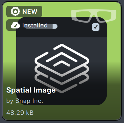 Once you have your environment setup, install the Spatial Image custom component through the Asset Library section under the Spectacles section.