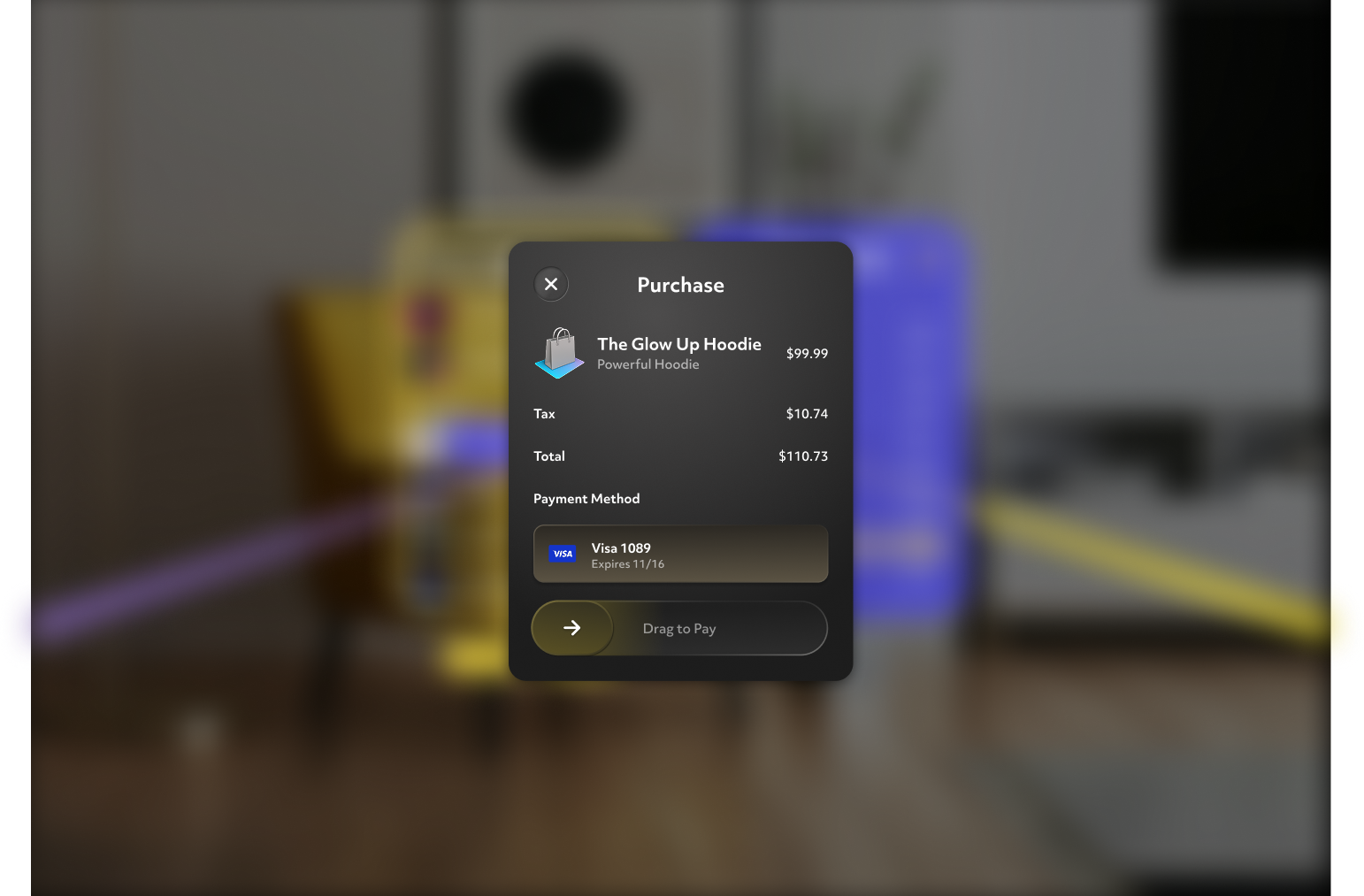 User performs a pinch-and-drag gesture or poke-and-drag gesture to confirm their intent to purchase. During this state, the system UI takes over and the Lens enters a paused state.