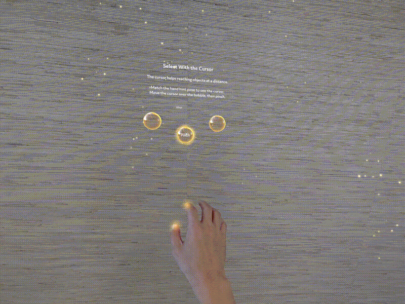 Spectacles Interaction Kit provides control and targeting feedback through the cursor components. To support scenarios where users interact from a distance greater than arm’s reach (the “farfield” use case), the InteractorCursor projects along the direction of the user's Interactor, helping users understand how to target more distant objects. The InteractorCursor offers automatic feedback when targeting objects.