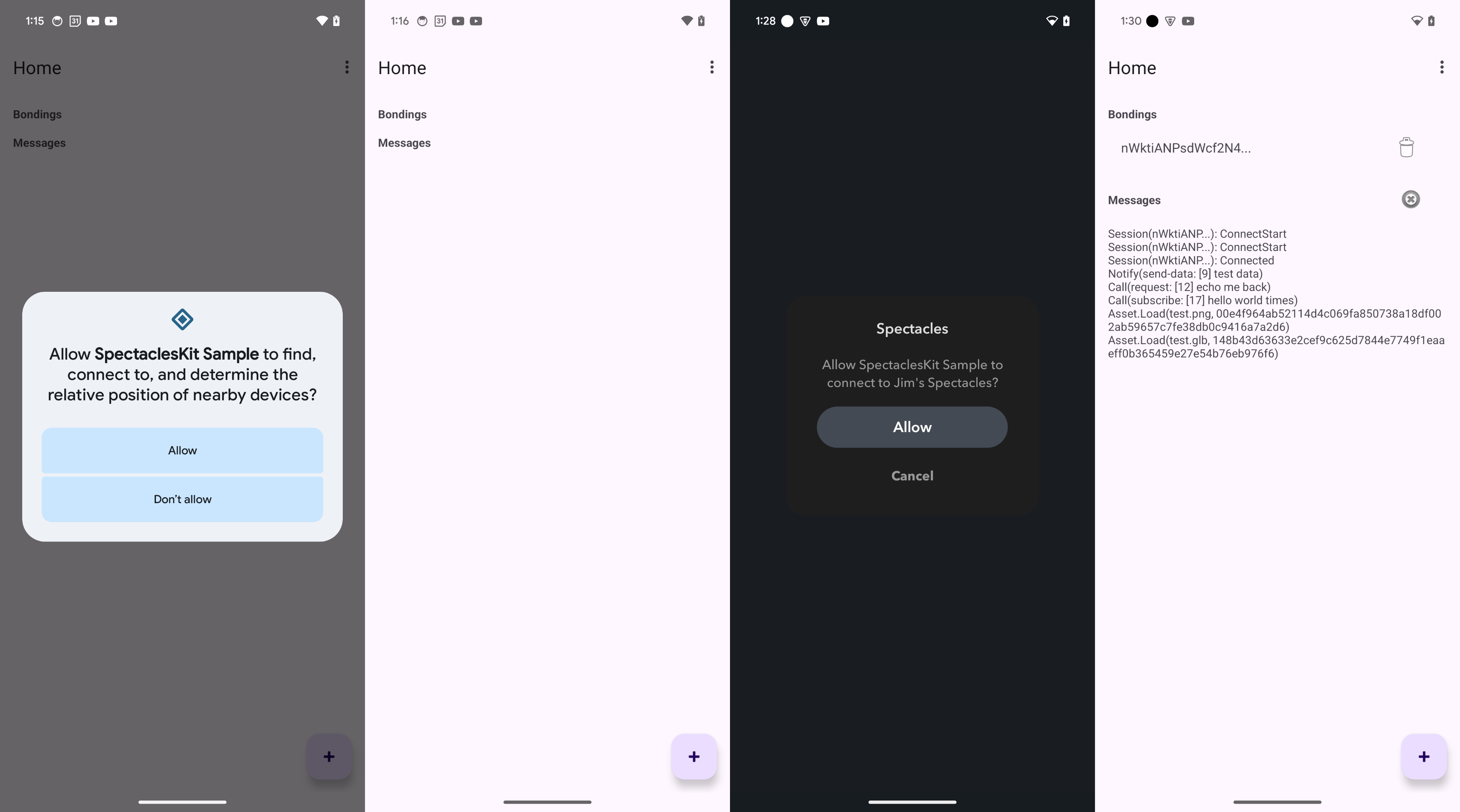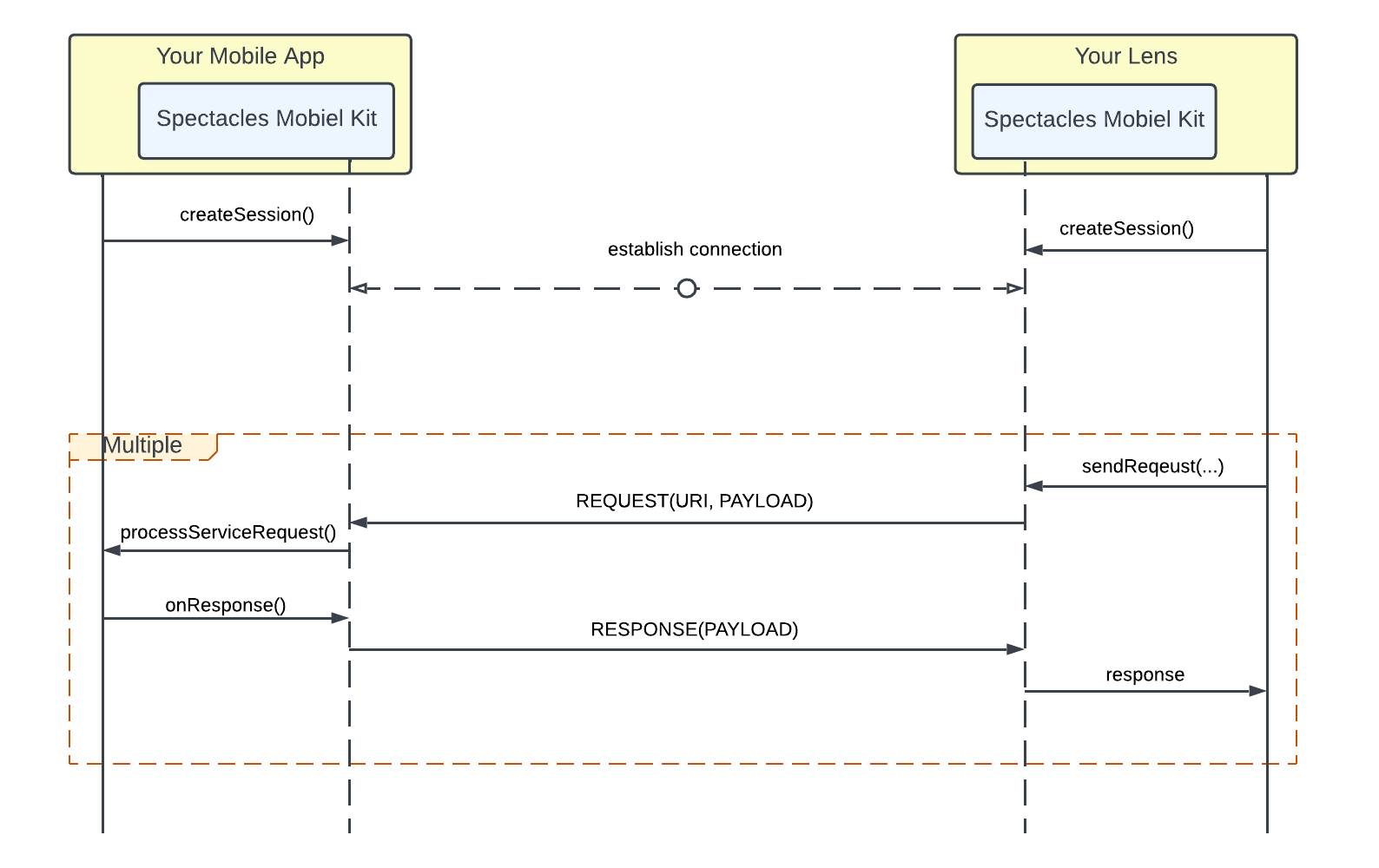 Once bonding is complete, your mobile application and the Lens on Spectacles can establish a secure communication session and begin exchanging messages. Each session is both encrypted and authenticated using the bonding credentials.