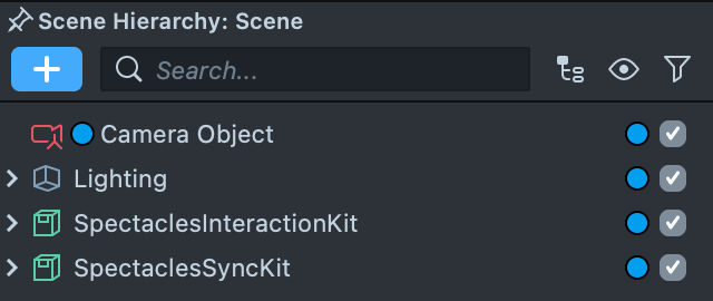 Assets/SpectaclesInteractionKit/Prefabs/SpectaclesInteractionKit.prefabinto the Scene Hierarchy and then dragAssets/SpectaclesSyncKit/SpectaclesSyncKit.prefabinto the Scene Hierarchy.