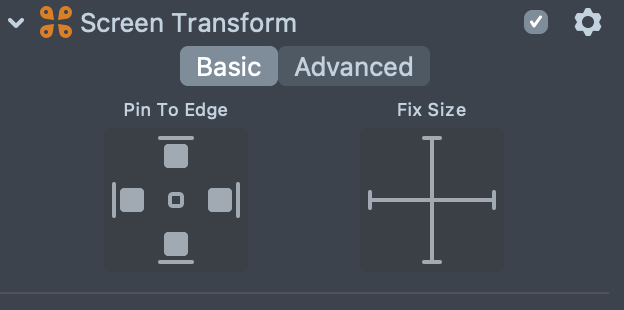 In conjunction with Safe Areas, the Screen Transform Component is used to ensure elements remain on screen and at expected sizes. Since applications and devices can have different resolutions for applying the Lens effects, it is important to pin content to the screen edge it is relative to. That is, if a slider should be near the right of the screen, Pin To Edge could be set to the right edge. Additionally, content may scale to match different resolutions and maintain correct offsets from edges. To avoid unintended sizing, you can ensure that elements which should not scale, are fixed in size in the Screen Transform component.