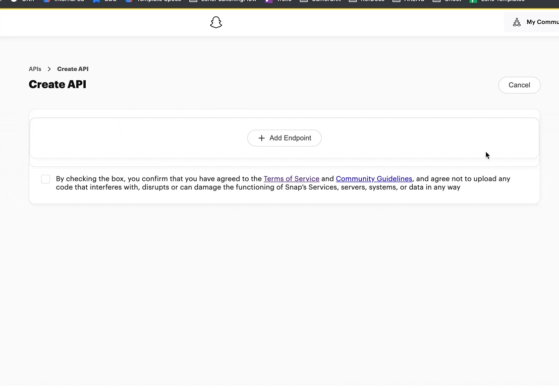 - Open the my-lenses.snapchat.com/apis