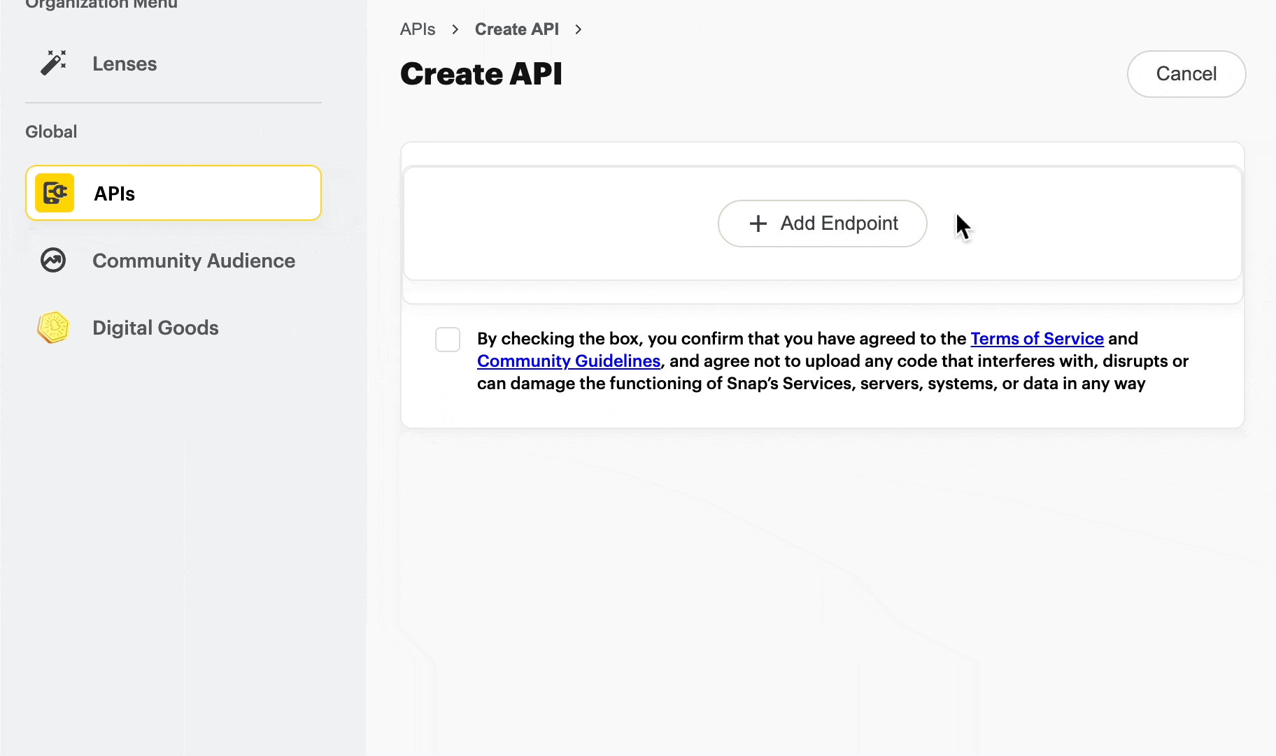 Click Submit and the API spec will be instantly approved if targeting only Camera Kit.