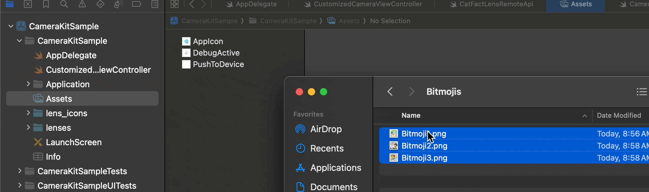 - Let’s start by adding a few image files to the Xcode project by dragging them into the Assets folder
