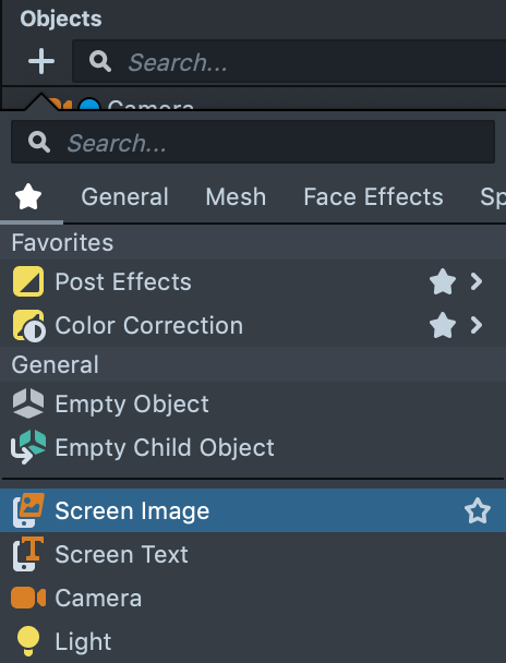 Images can be added to the Screen as well. These images will exist in 2D space attached to the screen. Screen Images are great for UI elements, overlays, headers, footers, logos and more.