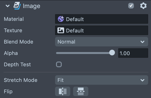 - **Material -**The material assigned to the image. Unless you're using your own custom material, use the Default material