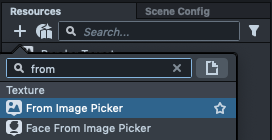 To create a Media Picker Texture asset, select + -> From Media Picker in the Resources panel.