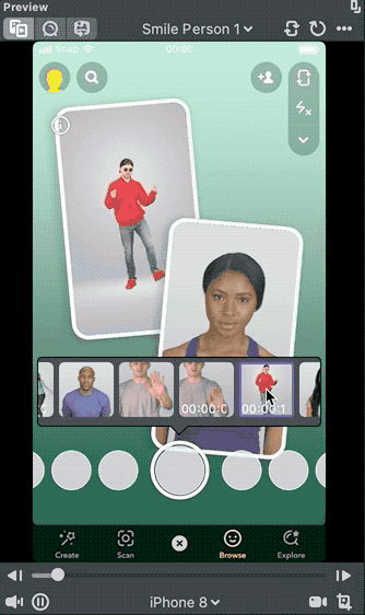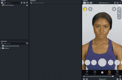 Lens Studio shows the usual images and videos found in the Preview panel as an example of what the user’s camera roll looks like.