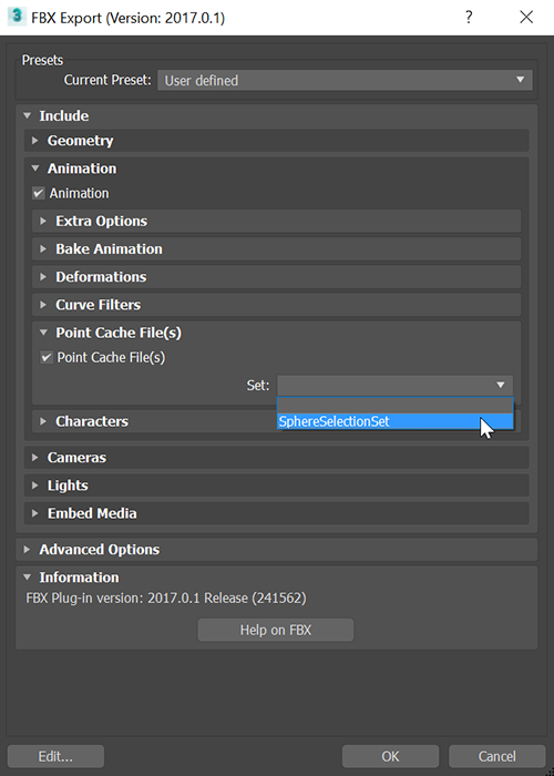 To export from 3ds Max, first we need to create a set of object(s) that we want to export as vertex animation. To create a set in 3ds Max, select the object(s), then click Create Selection Set from 3ds Max’s menu bar and give the set a name.