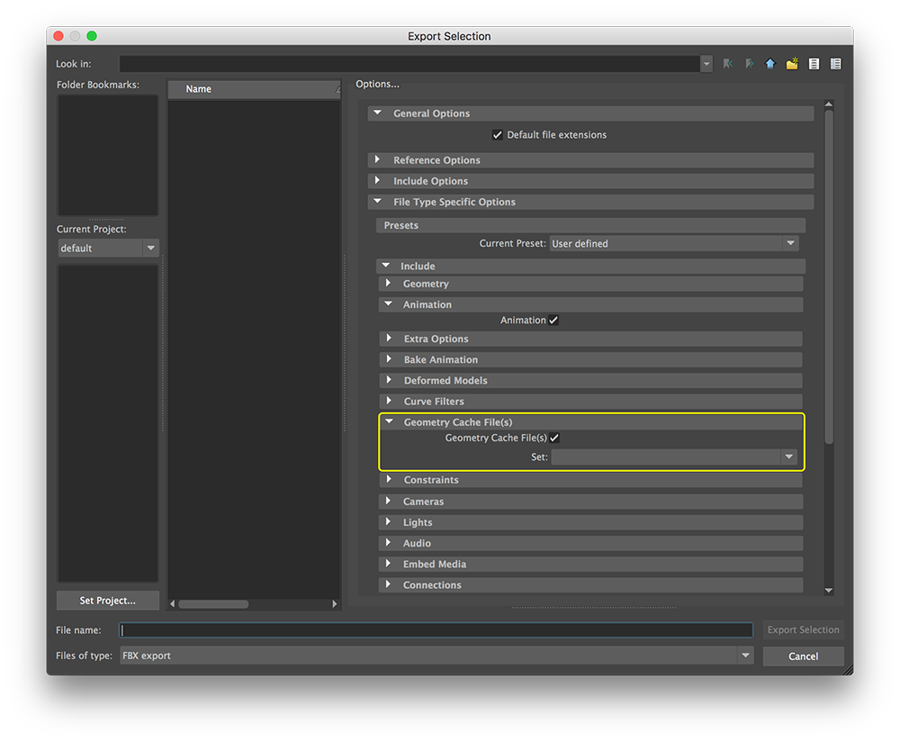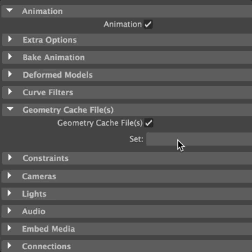 Then expand the Geometry Cache File(s) option and check the Geometry Cache File(s) checkbox.