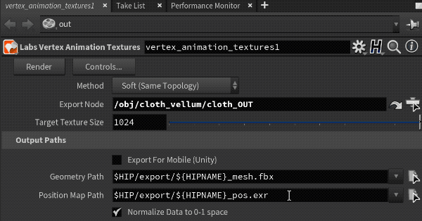 Before starting, make sure you can create older versions of the Labs Vertex Animation Texture (VAT) output node. To do this in Houdini: