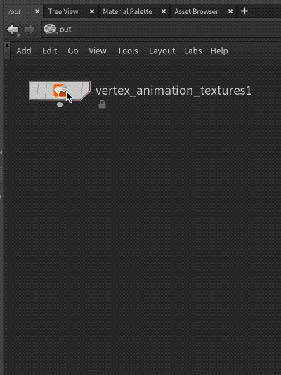 Rotation Map Pathfile extension from EXR to PNG. - Right-click on the Labs Vertex Animation Textures (VAT) output node and click