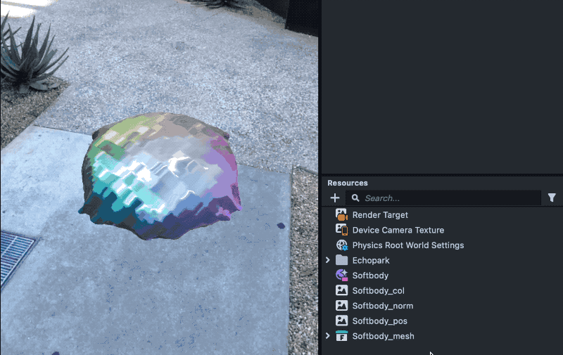 The Vertex Animation Textures asset, commonly known as VAT, enables you to render simulations from SideFX's Houdini and import them into Lens Studio. This asset is useful for dynamic simulations that would be difficult to animate, such as fluids, or require a lot of data to store and render, such as softbody or rigidbody simulations.