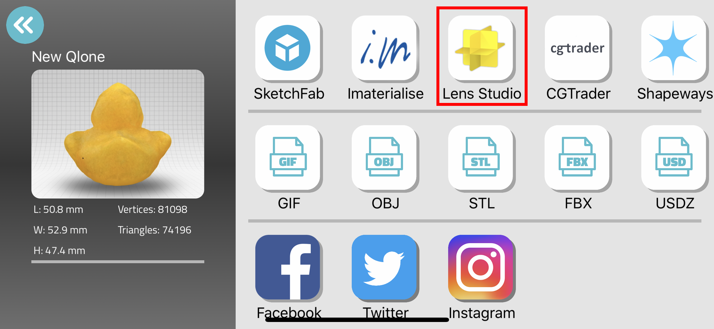 Qlone, 3D Object Export