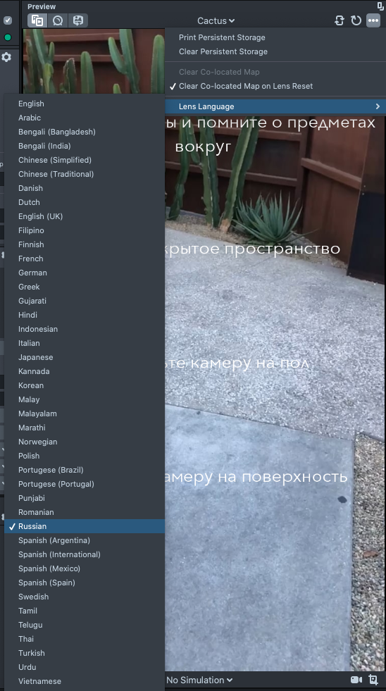 In the Preview panel, you have the option to simulate how your Lens would look in different languages.