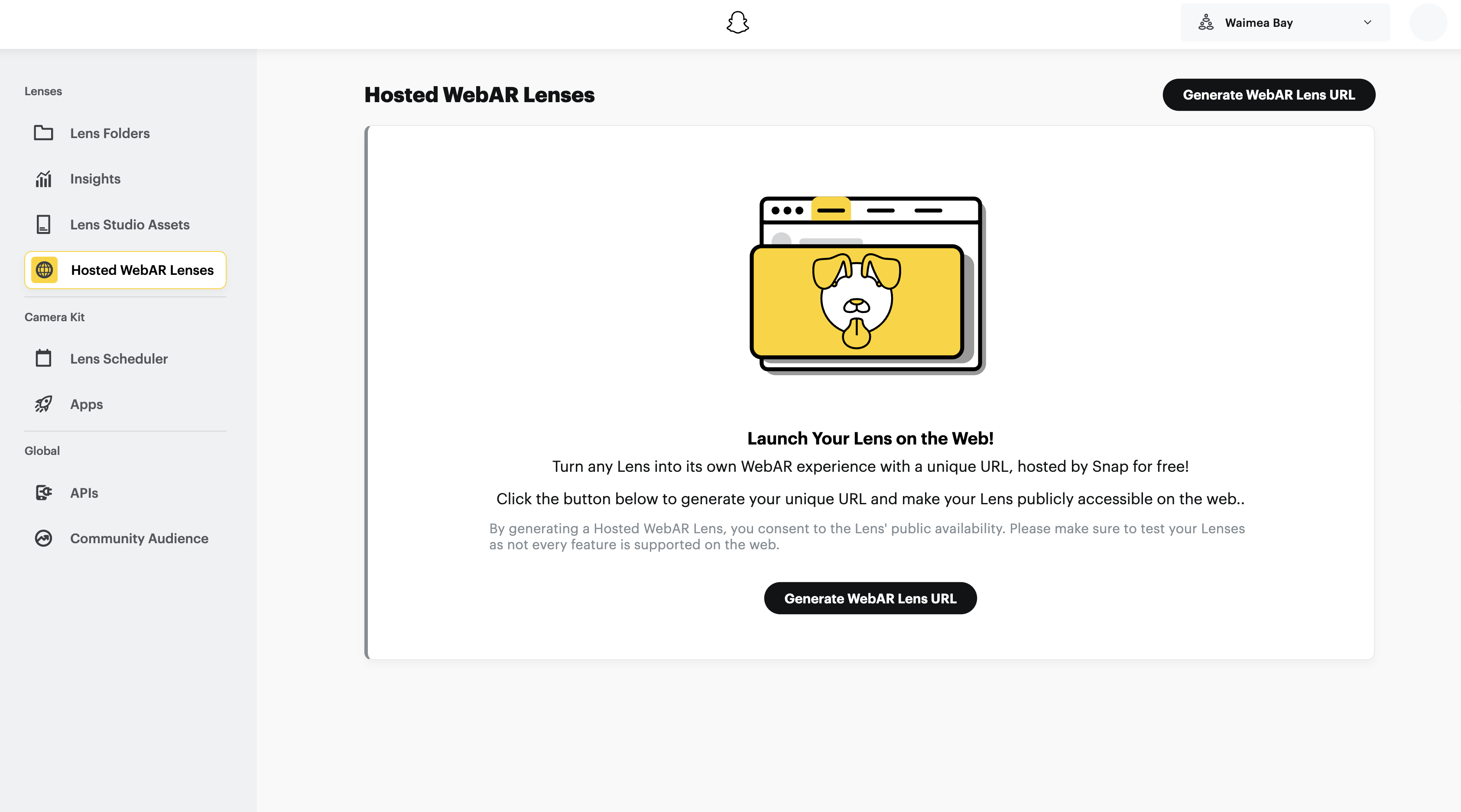 - Navigate to the Hosted WebAR Lenses page from the side navigation.