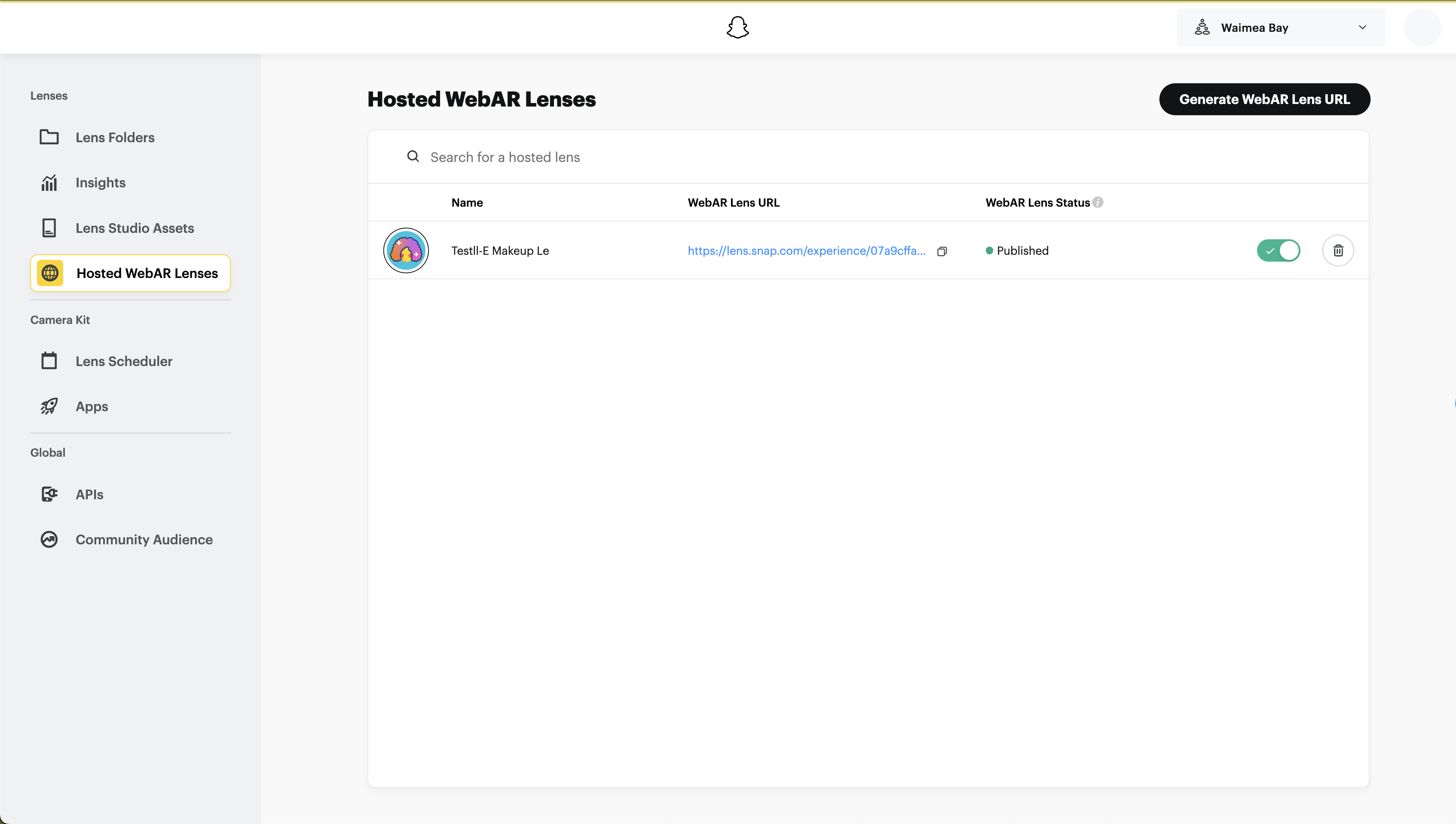 - Published: The Hosted WebAR Lens is live and can be accessed by anyone with the URL.