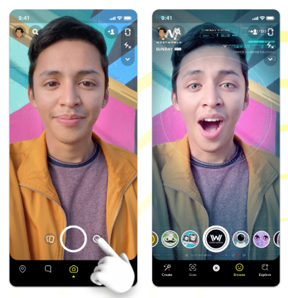 Across Snapchat, AR experiences are discovered and engaged with in the form of Lenses. In fact, the Snapchat app is the only social platform that opens directly to the camera, instead of a feed or messages. Building Lenses that inspire people to interact and engage is an important part of building your brand on Snapchat and increasing followers.
